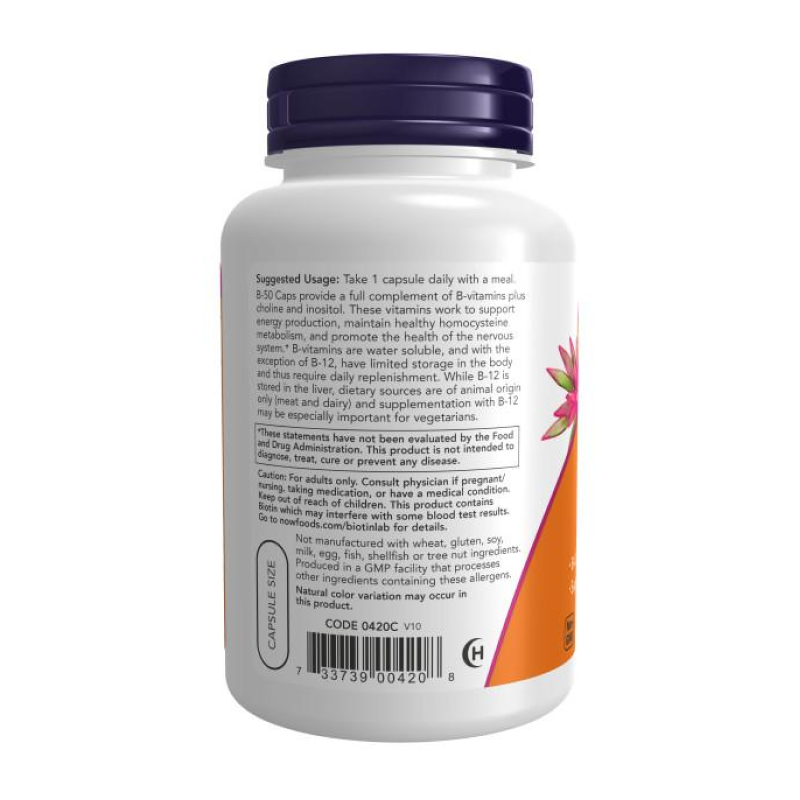 B-50 от NOW - это комплекс витаминов группы B, одной из важнейших групп питательных веществ. Эти витамины тесно взаимосвязаны и объединяются в одну группу, которую называют В-комплексом.